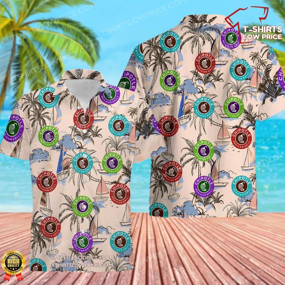 Celebrate your love for vibrant designs and bold flair with this unique Hawaiian shirt. Perfectly blending Chipotle Mexican Grill’s iconic branding with a lively oceanic theme, this shirt is a standout piece for anyone looking to add a splash of fun to their wardrobe. Featuring colorful Chipotle logos scattered across a backdrop of palm trees, sailboats, and serene blue skies, it’s a design that captures the spirit of adventure and relaxation. Whether you're dreaming of sandy beaches or simply want a touch of tropical charm, this shirt embodies the ultimate laid-back vibe.