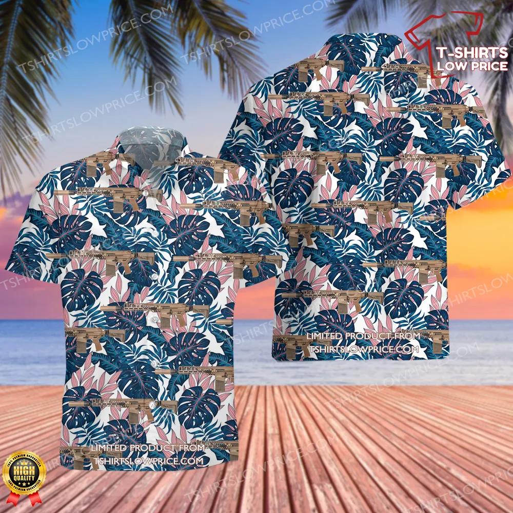 Related keywords: SIG Sauer XM7, tactical Hawaiian shirt, military rifle design, island-inspired graphics