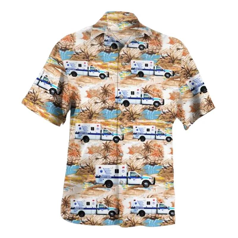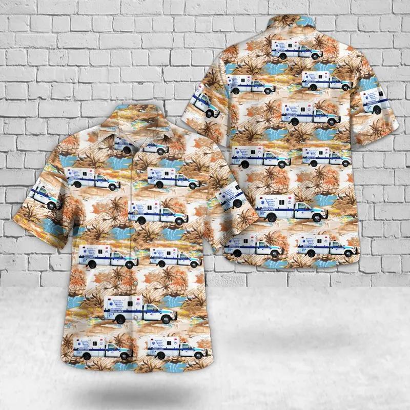 Related keywords: Stamford EMS shirt, tropical ambulance design, emergency service tribute, Hawaiian EMT apparel