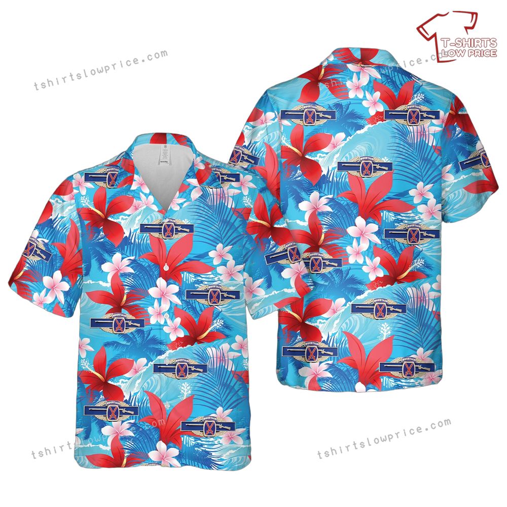 US Army 10th Mountain Combat Infantry Badge Army Patch CIB Hawaiian Shirt