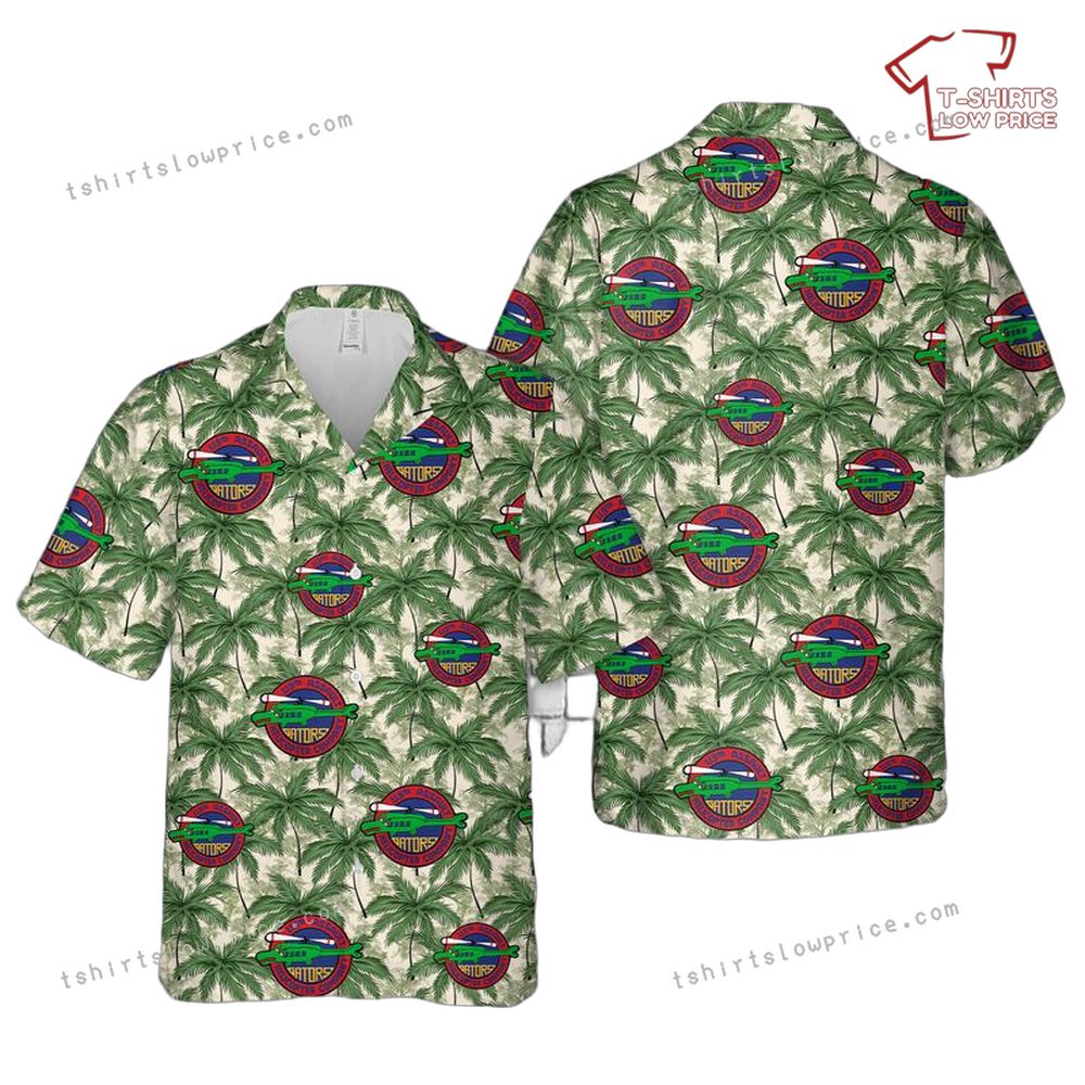 The shirt showcases a dynamic pattern of palm trees and the iconic emblem of the 119th Assault Helicopter Company, perfectly blending military history with a laid-back island vibe. Each element of the design speaks volumes about bravery and adventure, capturing the essence of the unit's storied past. The colorful insignia stands out against the lush green foliage, highlighting the contrast between duty and relaxation. This shirt isn't just about style—it's a tribute to those who serve and a celebration of tropical paradise.