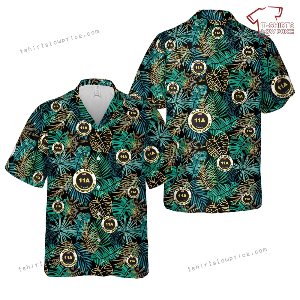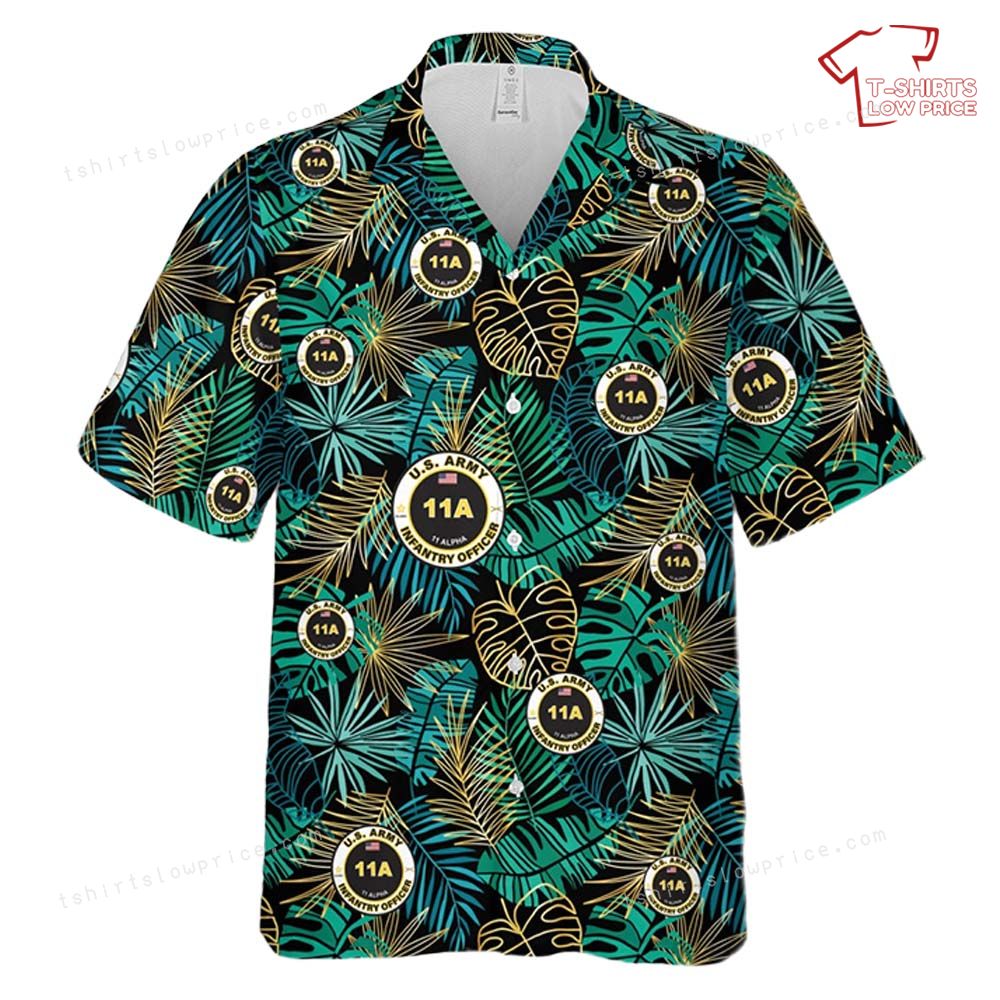 Related keywords: Army Infantry shirt, 11A Officer Hawaiian shirt, military tropical design, U.S. Army apparel