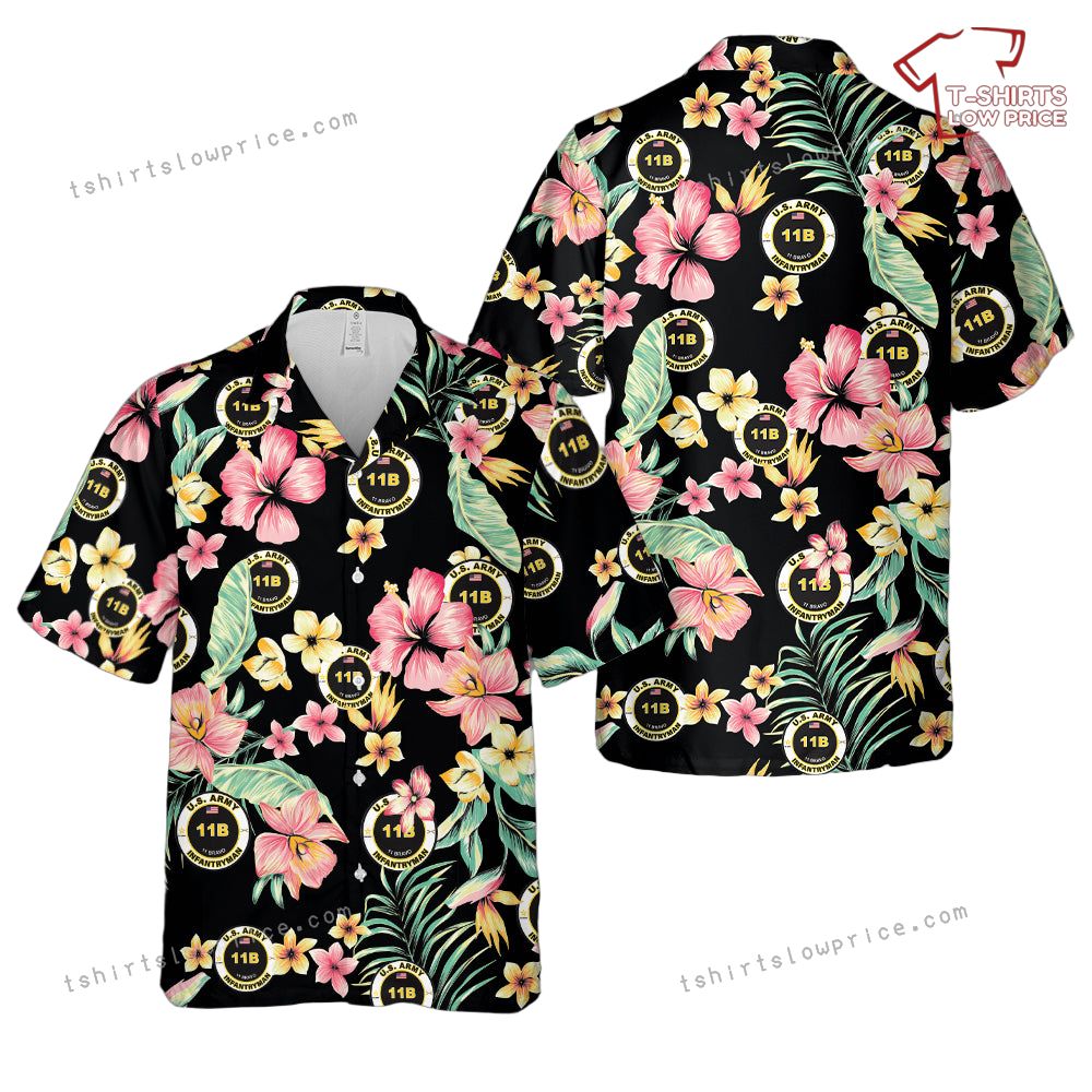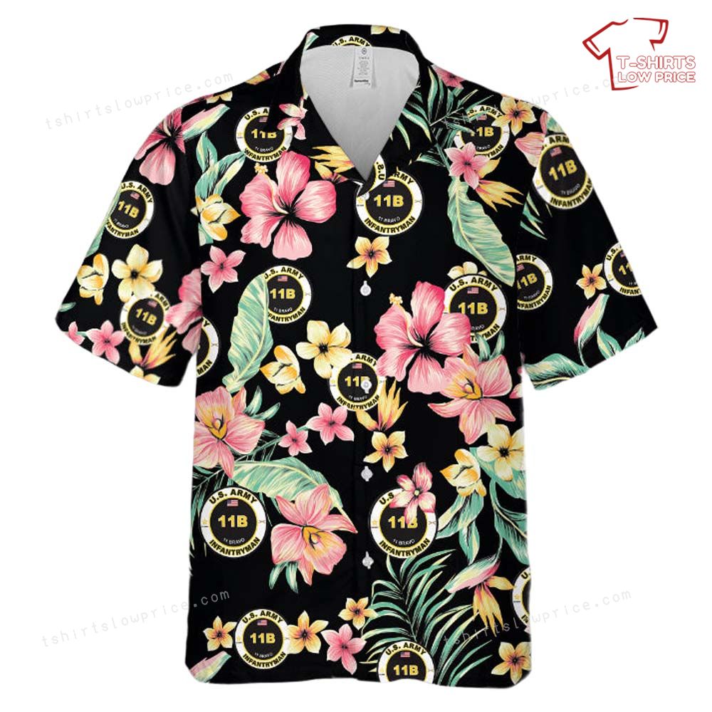Related keywords: 11B Infantryman apparel, U.S. Army Hawaiian shirt, military floral shirt, patriotic tropical clothing