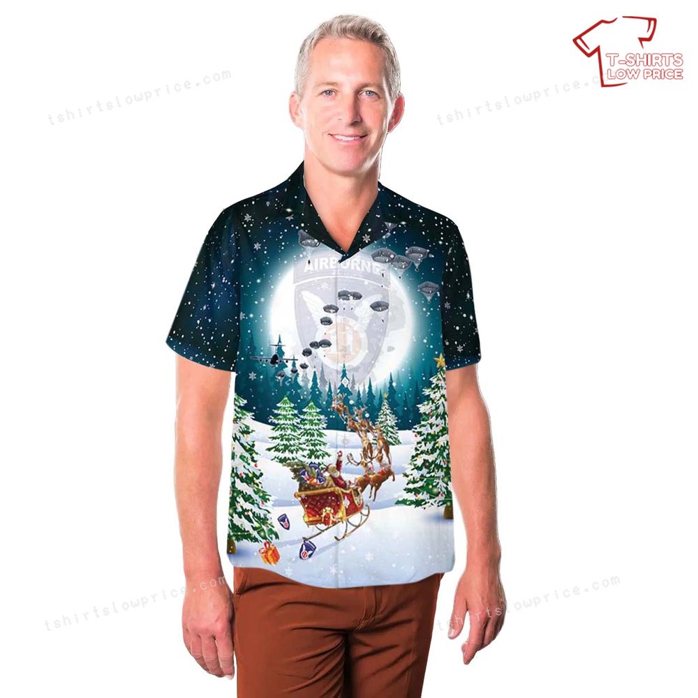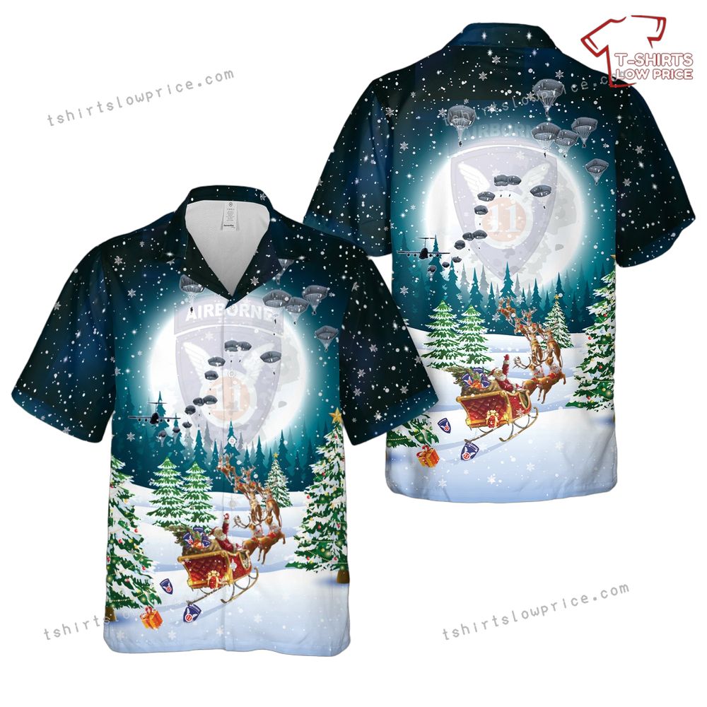 US Army 11th Airborne Division Parachute Christmas Hawaiian Shirt