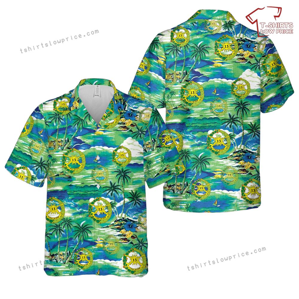 Related keywords: 13th Cavalry Regiment, military Hawaiian shirt, tropical army apparel, regiment emblem design