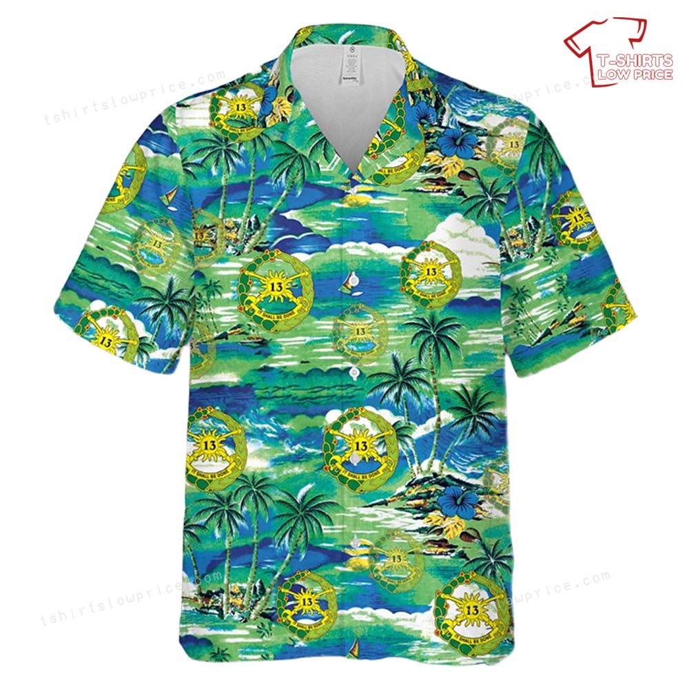 Showcase your pride and connection to the U.S. Army 13th Cavalry Regiment with this vibrant Hawaiian shirt design. Perfectly blending military heritage with island vibes, this shirt stands out with its detailed artwork and captivating colors. Ideal for veterans, supporters, and history enthusiasts, the design pays homage to the regiment’s storied legacy while adding a refreshing tropical aesthetic. Let this unique style make a bold statement wherever you go.