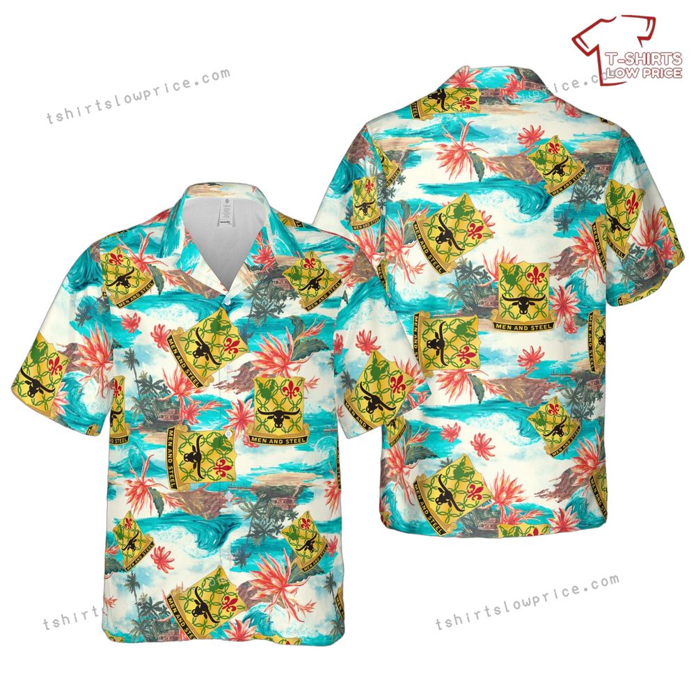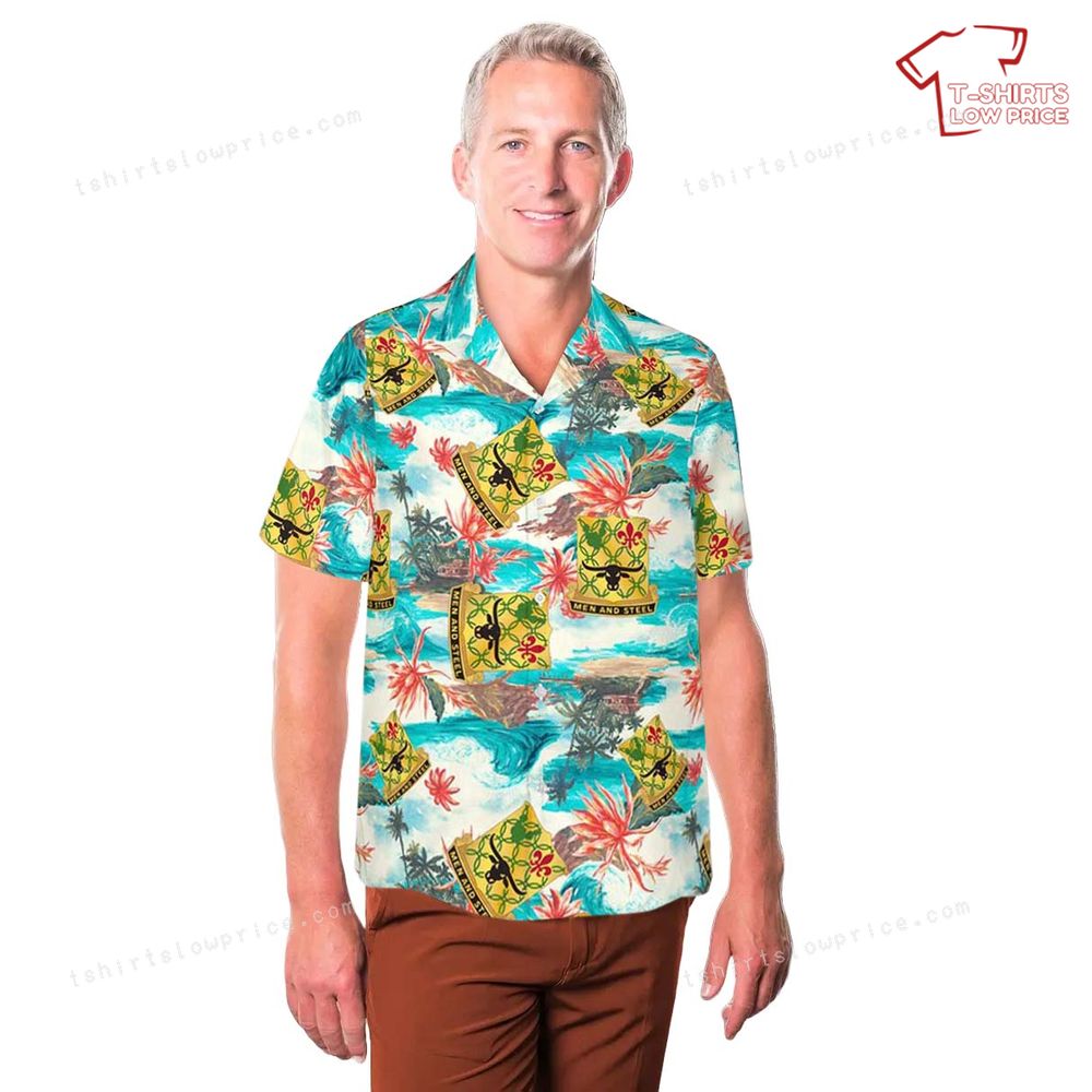 US Army 149th Armored Regiment Men and Steel Hawaiian Shirt Product Detail: