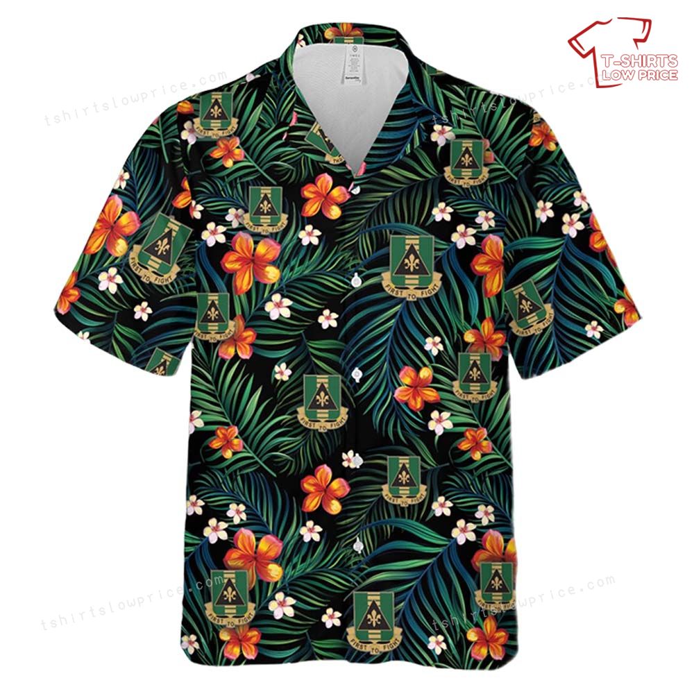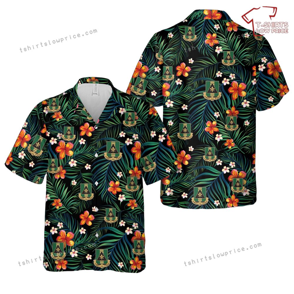 The design of this Hawaiian shirt is a captivating fusion of the 156th Armor Regiment's insignia and lush island elements. The regiment's emblem stands proudly against a backdrop of tropical leaves and vibrant flowers, symbolizing both strength and tranquility. The harmonious blend of military insignia and nature-inspired designs creates a visually striking piece that represents unity, bravery, and the spirit of aloha. Each element of the shirt complements the others, making it a standout piece that tells a story with every wear.