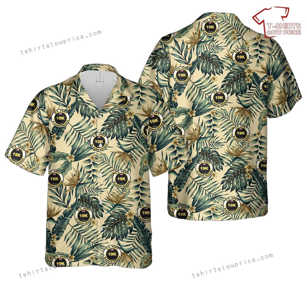Related keywords: US Army 19K, M1 Armor Crewman design, military Hawaiian shirt, tropical military apparel