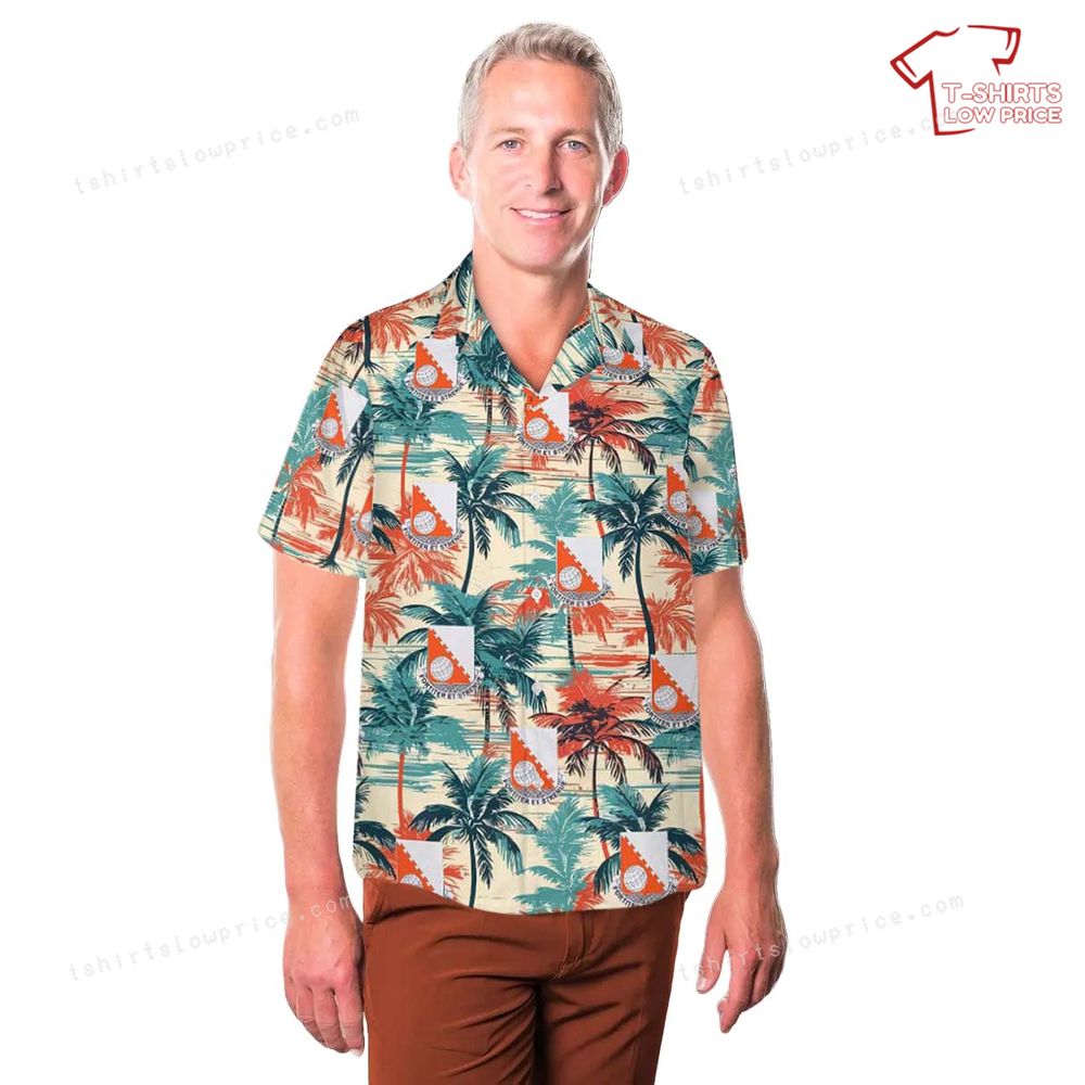 This Hawaiian shirt features a stunning visual representation of the 30th Signal Battalion's insignia, artfully interwoven with lush palm trees and sunset tones. The intricate insignia, including its signature shield and signal imagery, symbolizes the battalion's proud communications legacy and enduring service. The tropical elements, with their vibrant greens and oranges, create a striking contrast and balance, evoking the calming beauty of nature and the steadfastness of military dedication. It’s a true celebration of history, honor, and the spirit of the islands.