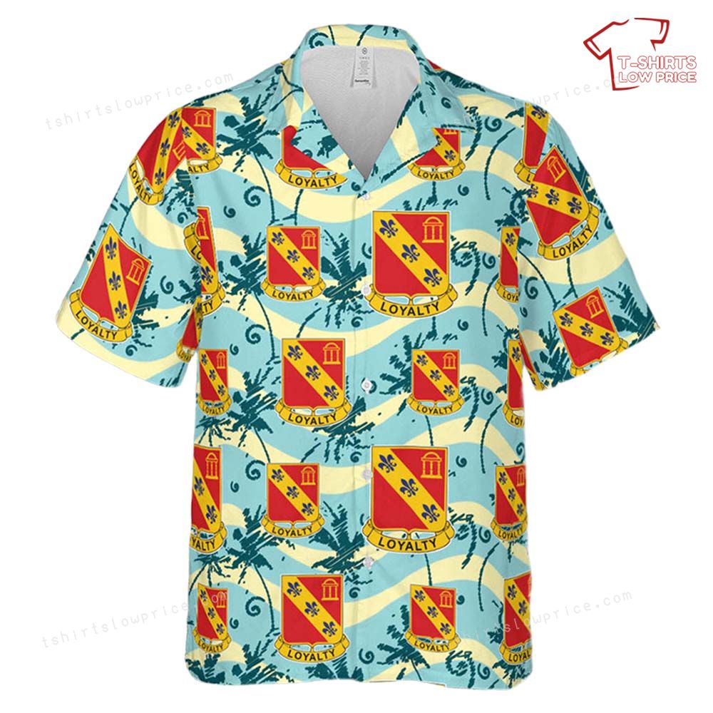 Related keywords: 319th Field Artillery Regiment shirt, US Army Hawaiian shirt, military emblem apparel, loyalty crest clothing