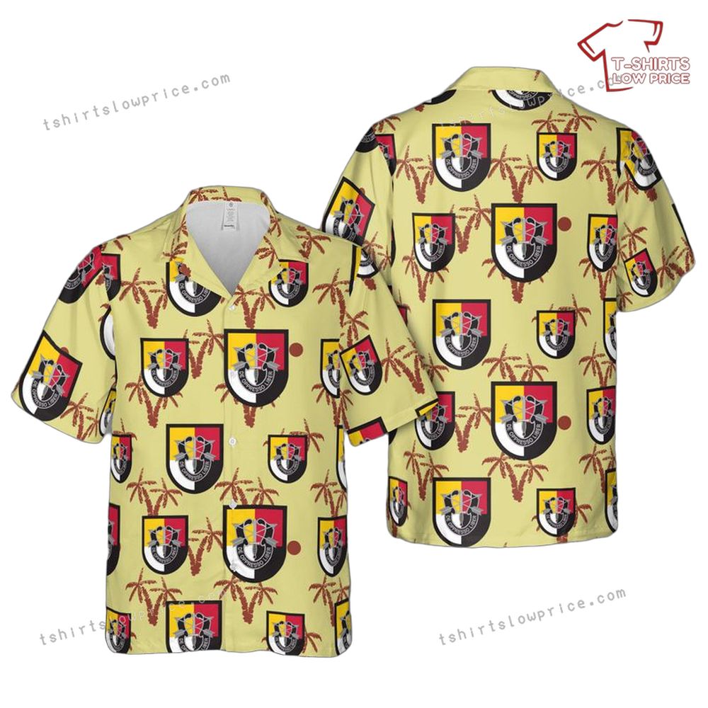 Related keywords: 3rd SFG emblem shirt, tropical military apparel, US Army Hawaiian design, Special Forces island theme