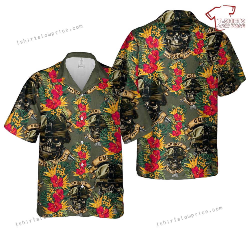 Related keywords: military skull shirt, tropical military apparel, 800th MP Company, Hawaiian tribute wear
