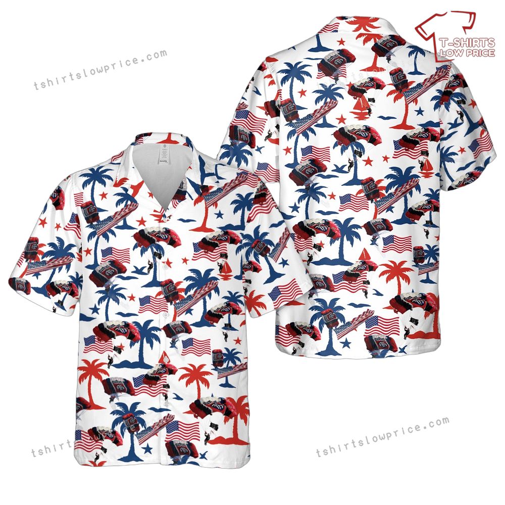 US Army 82nd ABN Division All American Freefall Parachute Demonstration, 4th Of July Hawaiian Shirt Product Detail: