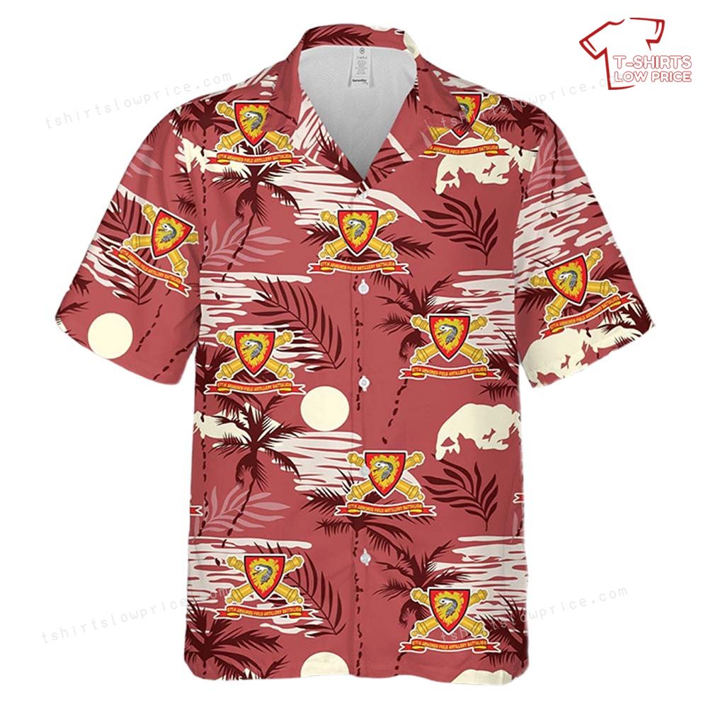 US Army 87th Armored Field Artillery Battalion – DUI w Br – Ribbon Hawaiian Shirt