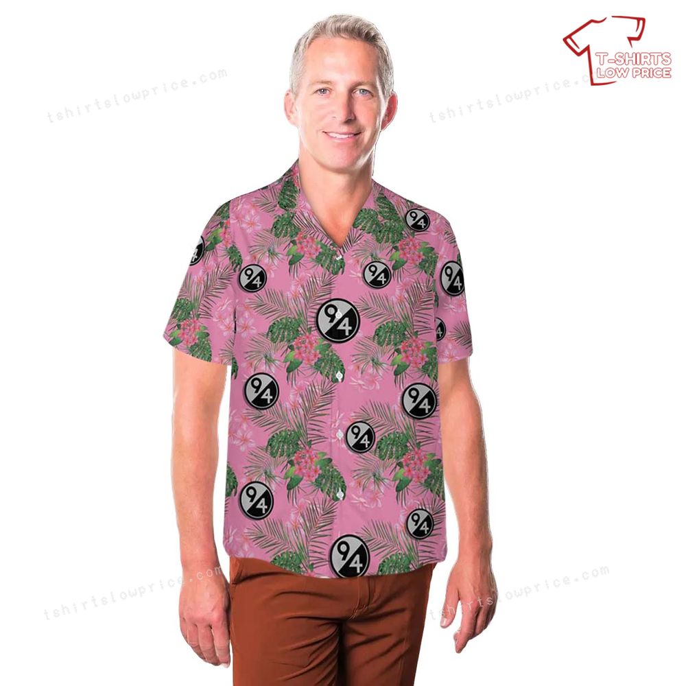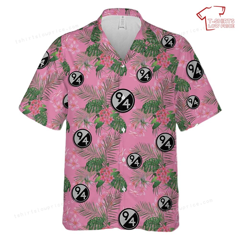 Step into a vibrant blend of patriotism and paradise with this unique Hawaiian shirt. Perfect for those who appreciate both the beauty of tropical design and the spirit of the 94th Infantry Division, this shirt makes a statement wherever you go. Bright pink serves as a lively backdrop, adorned with lush green palm leaves and tropical flowers. It's an eye-catching piece that celebrates both the natural world and the storied history of a proud military division.