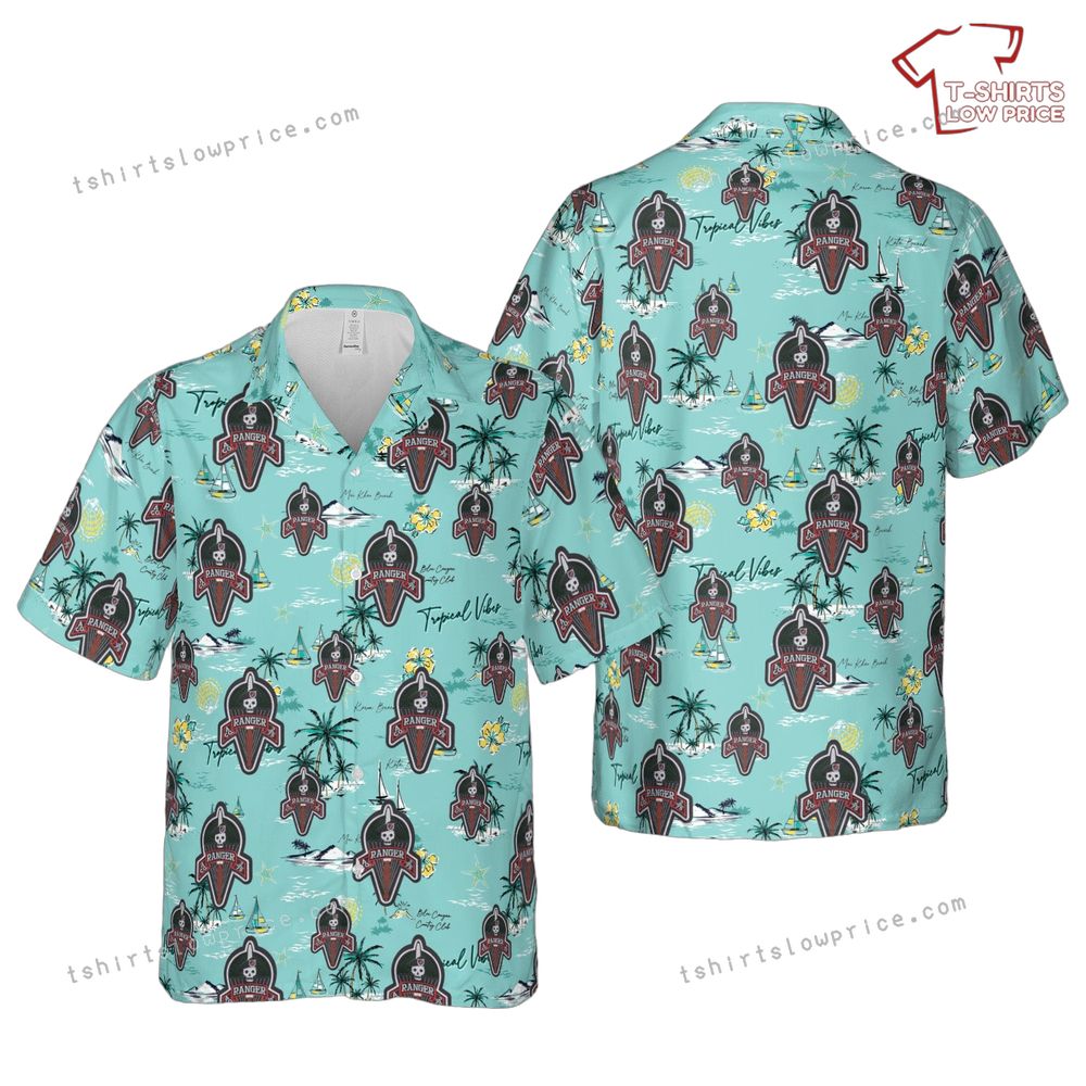 US Army A Co 2-75 A Company 2nd Battalion 75th Ranger Regiment Patch Hawaiian Shirt