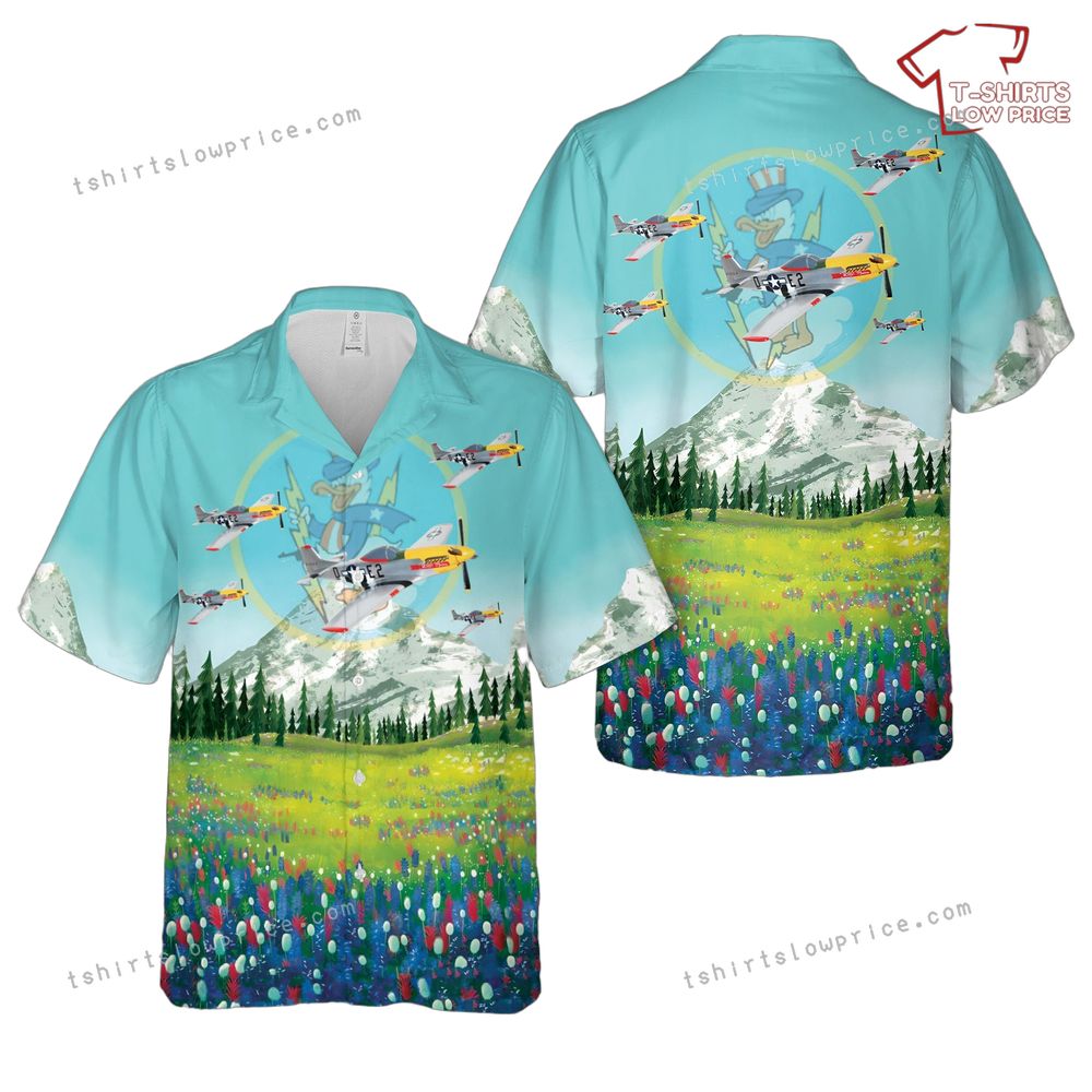 US Army Air Forces 375th Fighter Squadron, 361st Fighter Group 'Yellow Jackets’ P-51 Mustang ‘Detriot Miss’ In WWII Hawaiian Shirt Product Detail: