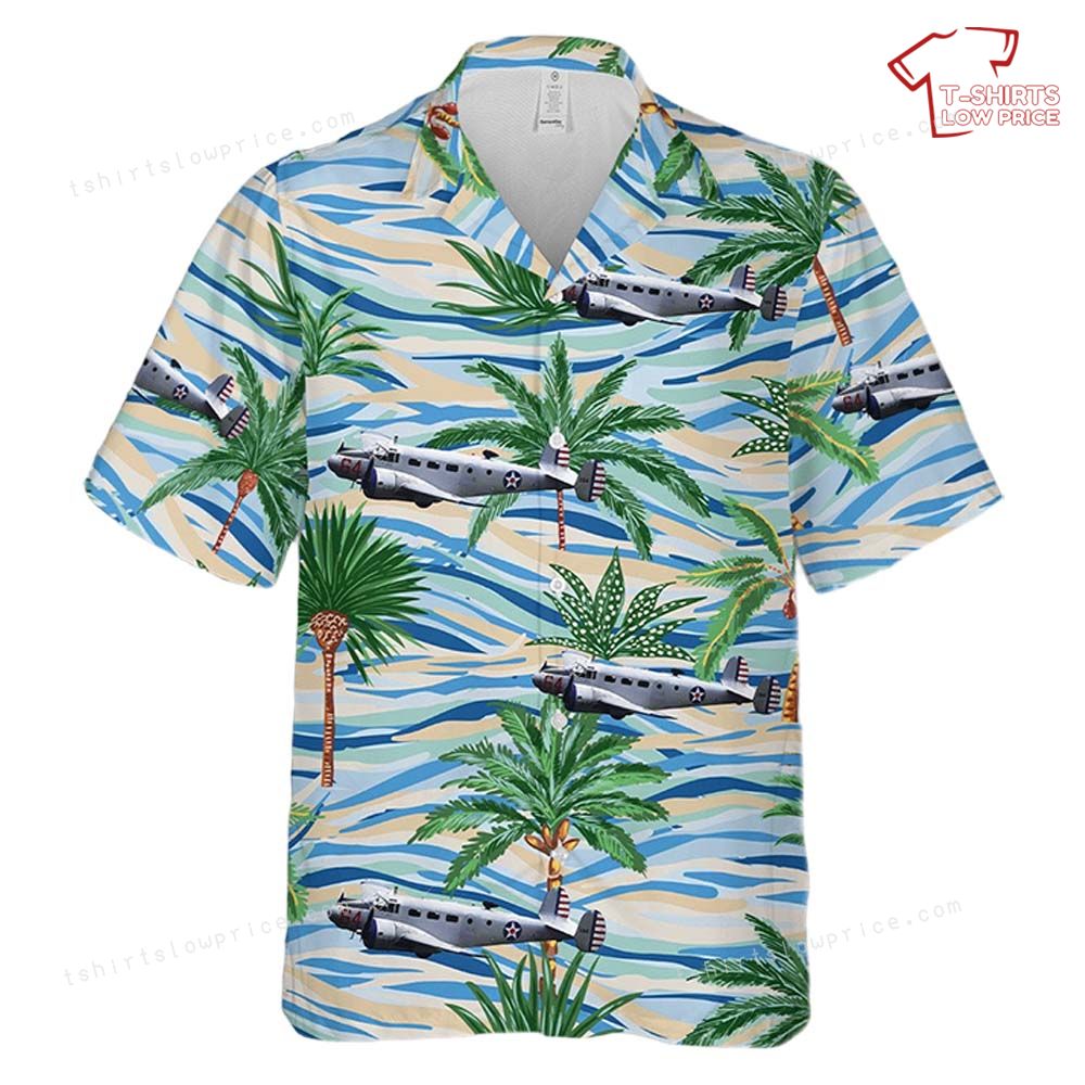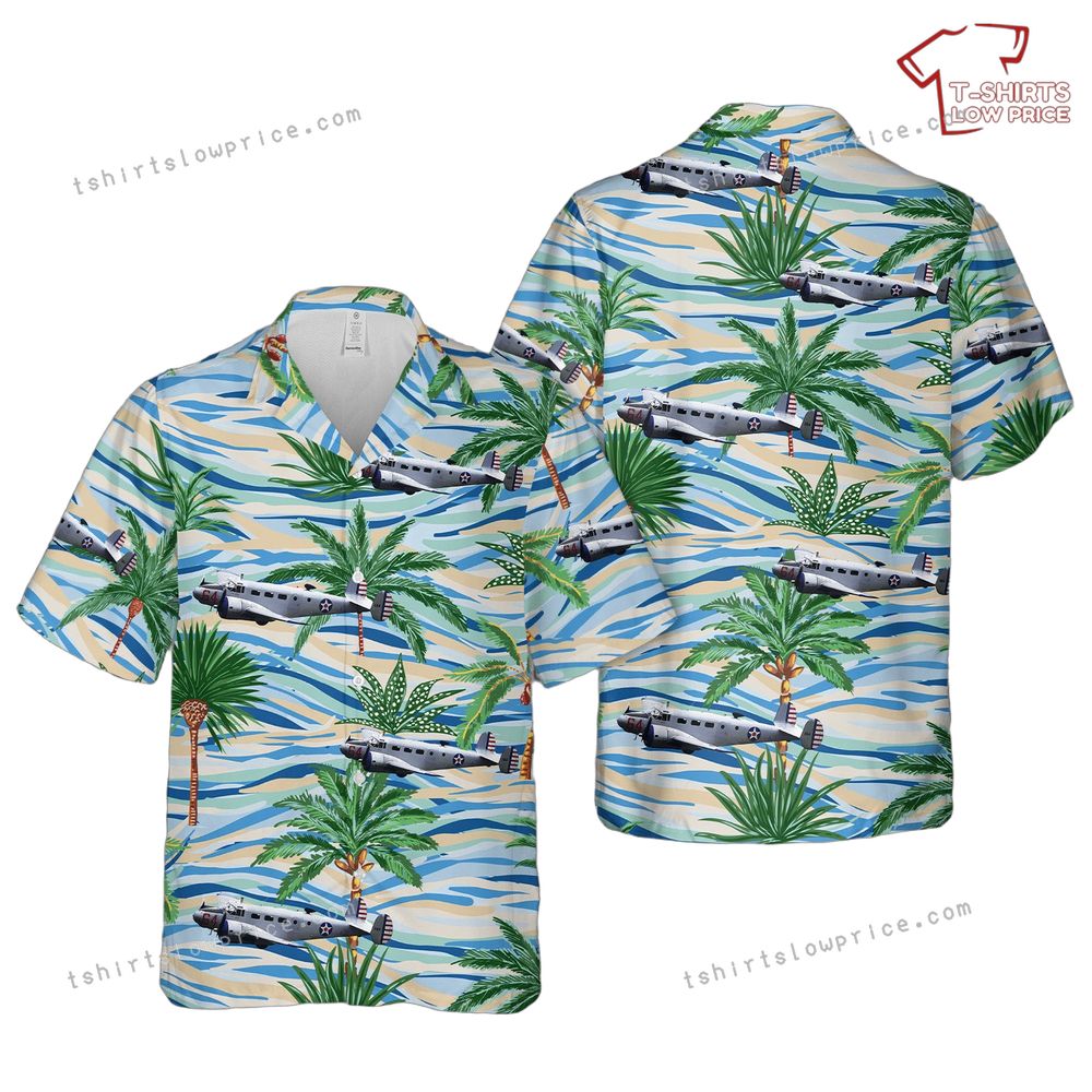 Related keywords: Beechcraft Model 18 shirt, US Army Air Forces apparel, vintage aviation clothing, tropical aviation shirt