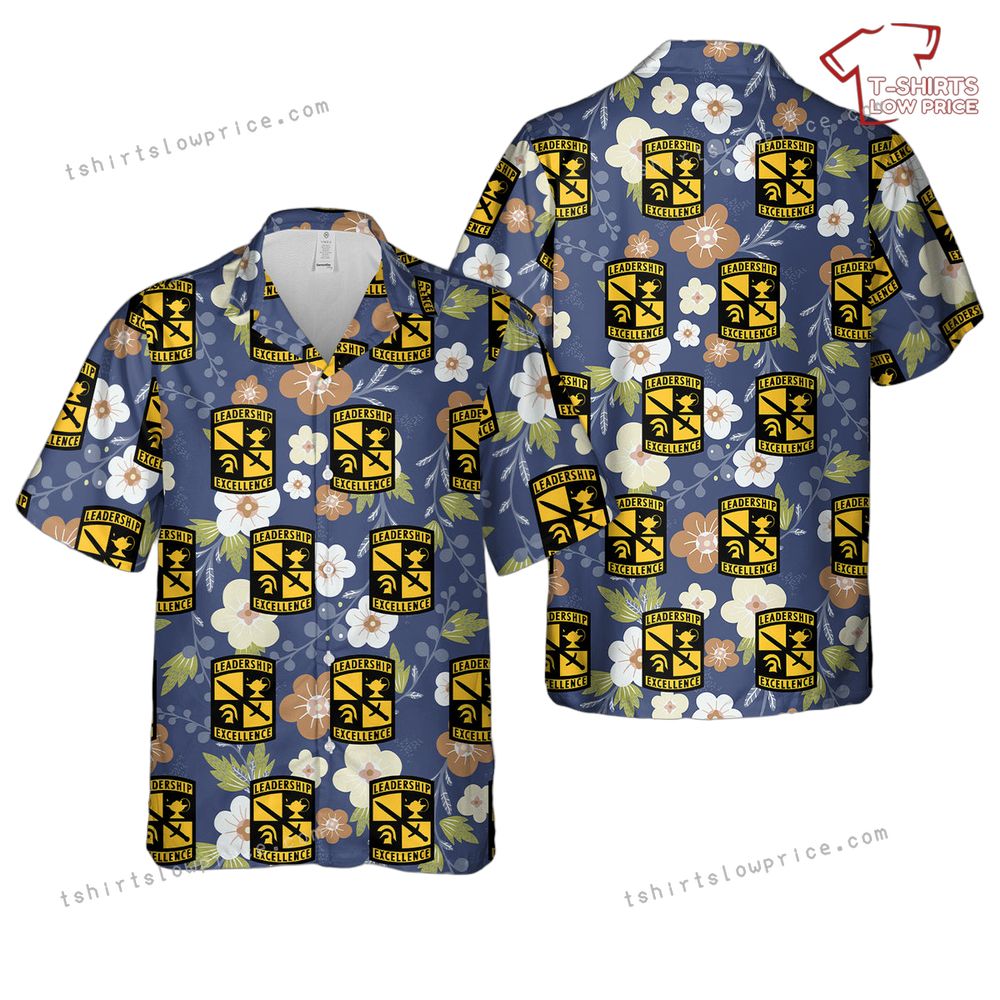 Related keywords: AROTC cadet shirt, leadership insignia, tropical military apparel, US Army emblem