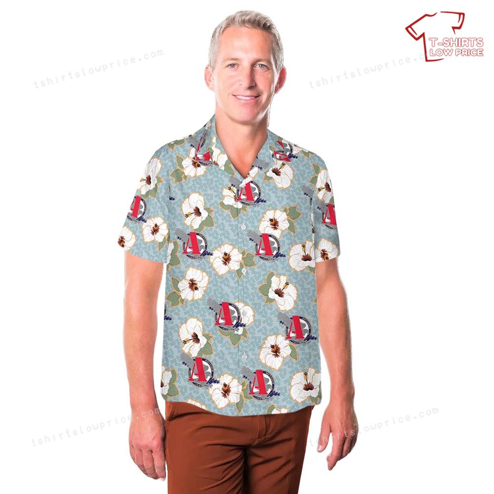This Hawaiian shirt design beautifully blends the US Army Attack Company logo with a vibrant floral pattern. The red and blue insignia of the 1-38 Infantry Battalion stands out against the soft turquoise backdrop, surrounded by white hibiscus flowers. The juxtaposition of strong military symbolism with the delicate charm of tropical blooms creates a unique harmony, representing strength, resilience, and the spirit of camaraderie. Each element of the design tells a story, honoring the Battalion’s legacy while celebrating the relaxed, colorful tropical aesthetic.