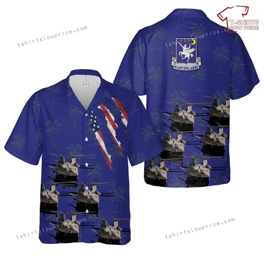US Army Boeing-Vertol MH-47E Chinook, 160th SOAR Night Stalkers Hawaiian Shirt Product Detail: