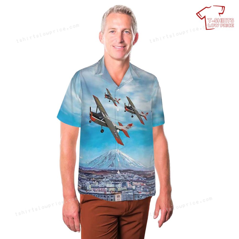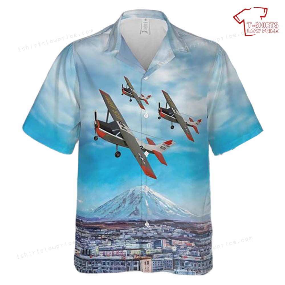 This vibrant Hawaiian shirt showcases the iconic Cessna 172 T-41 Mescalero aircraft soaring across a picturesque sky. Against a backdrop of majestic mountains and sprawling cityscapes, the planes are depicted with precision and artful detail, evoking a sense of freedom and adventure. The artwork beautifully intertwines elements of history and nature, creating a captivating scene that draws the eye and sparks conversation. This design pays homage to the rich legacy of aerial exploration and the timeless allure of flight, making it a must-have for aviation aficionados.