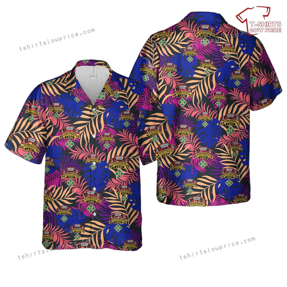Showcase your admiration for the brave US Army Company K (RANGER), 75th Infantry (Airborne) with a bold and vibrant Hawaiian shirt that seamlessly combines military pride with island vibes. This unique design captures attention with its colorful palette and intricate details, making it a standout tribute to the valor and dedication of the Rangers. Perfect for those who honor the legacy of airborne infantry, this shirt blends historic excellence with modern style for a truly engaging look.