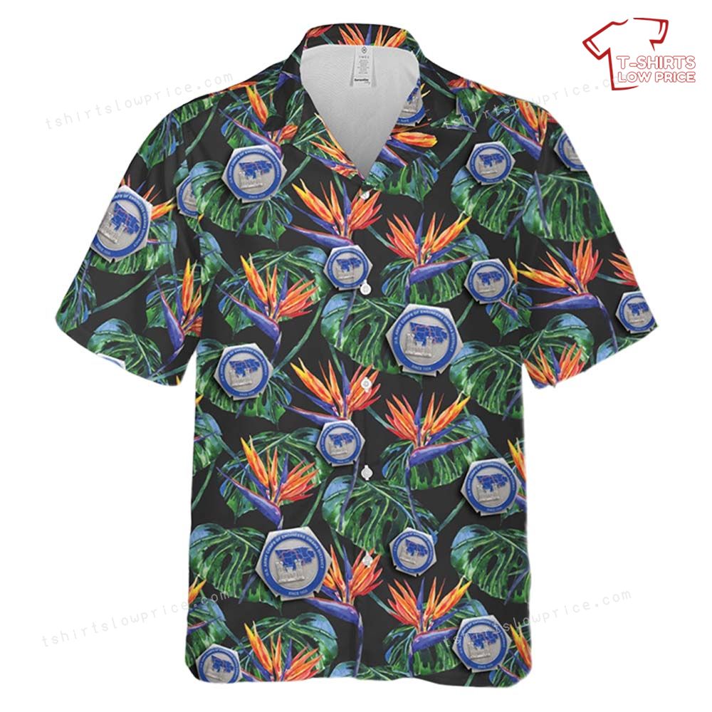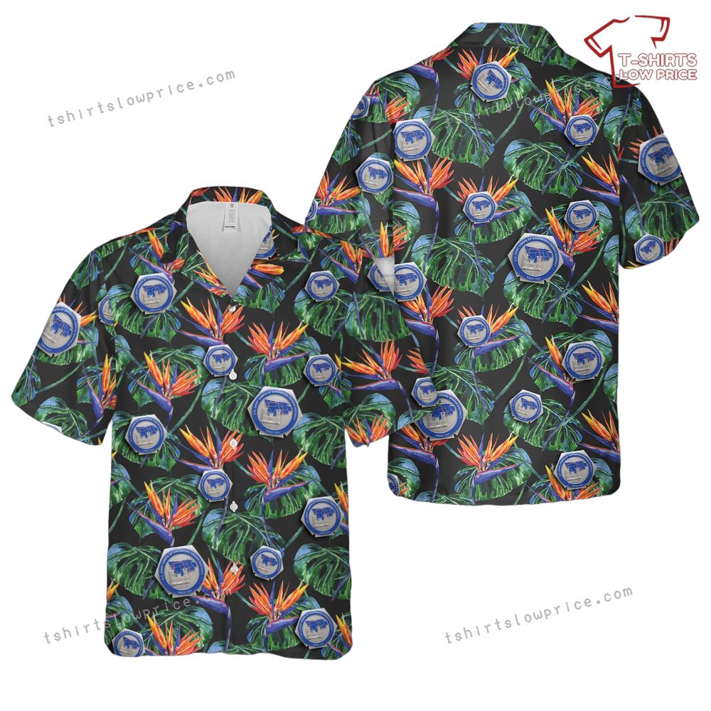 Related keywords: Army Corps insignia shirt, Omaha District apparel, tropical military design, bird-of-paradise shirt