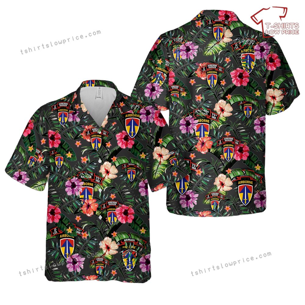 Related keywords: 75th Infantry shirt, US Army Ranger apparel, military Hawaiian shirt, Airborne Division design
