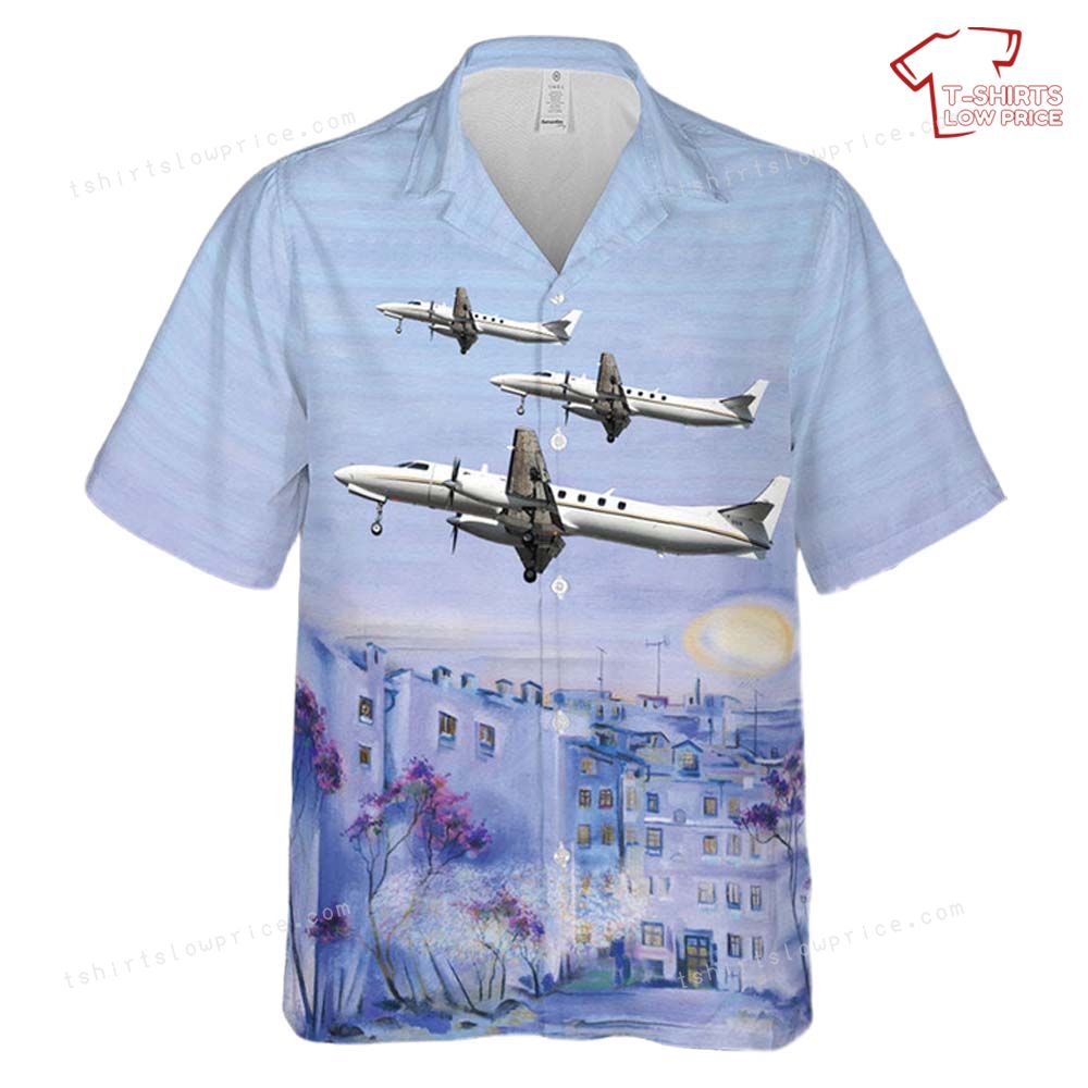 Celebrate the skies with this stunning Hawaiian shirt featuring the iconic US Army Fairchild C-26B Metro 23. Perfect for aviation enthusiasts, the design captures the essence of flight and the beauty of airborne adventures. The serene backdrop complements the elegance of the aircraft in formation, creating a visually striking and unique piece. Whether you're a fan of military aviation or simply love bold, themed designs, this shirt brings excitement and nostalgia to your wardrobe.