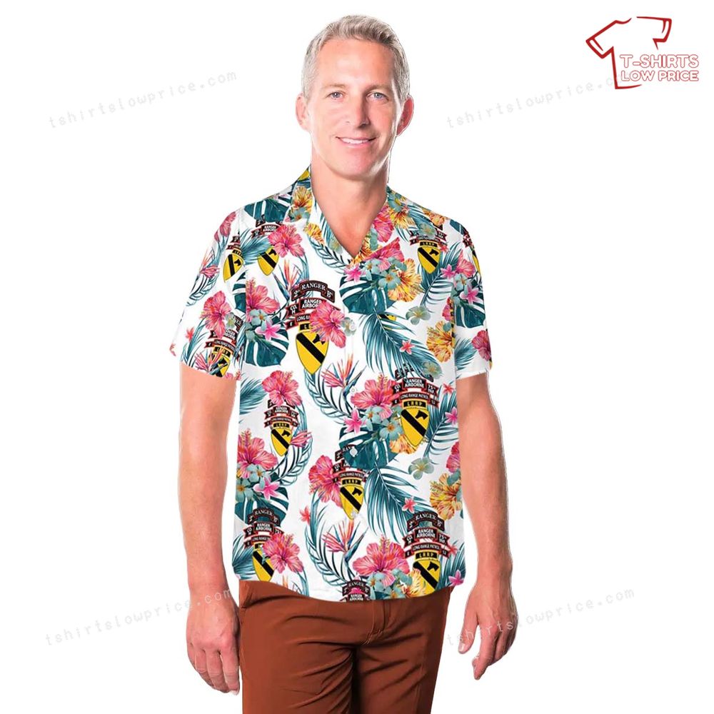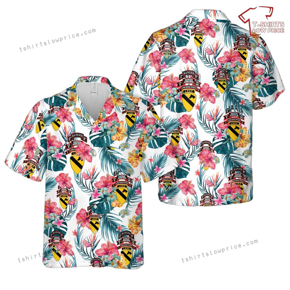 Related keywords: US Army crest shirt, Long Range Patrol Detachment design, 1st Cavalry Division apparel, military Hawaiian shirt