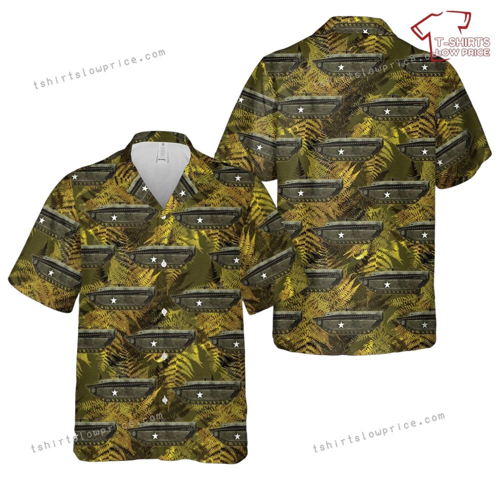Related keywords: US Army LVT-4 shirt, WWII Hawaiian shirt, military vehicle apparel, 1944 history clothing