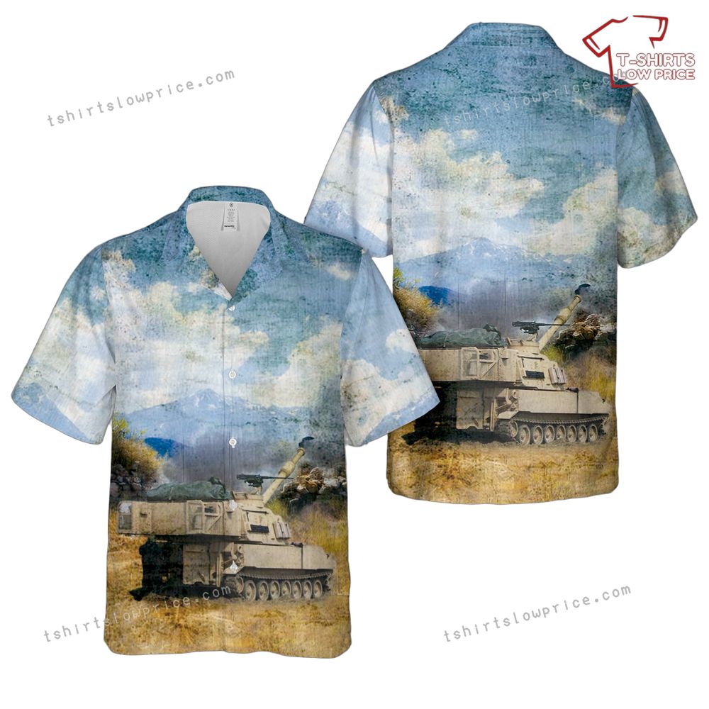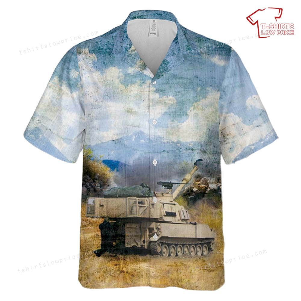 US Army M109A6 Paladin from the 1-84th Field Artillery Hawaiian Shirt Product Detail:
