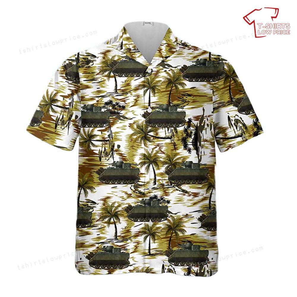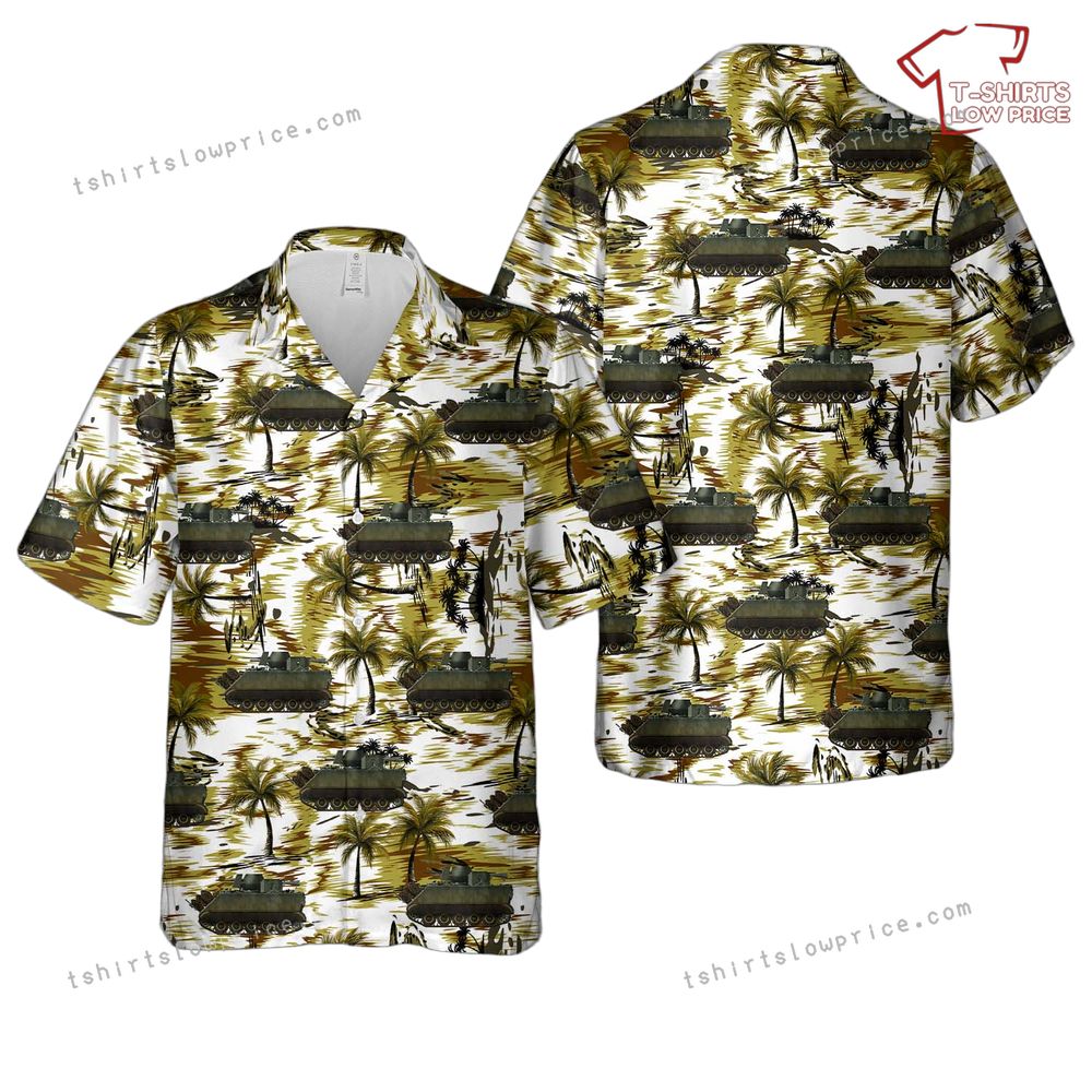 Related keywords: M113A1 ACAV shirt, Vietnam War apparel, military Hawaiian shirt, recoilless gun graphic