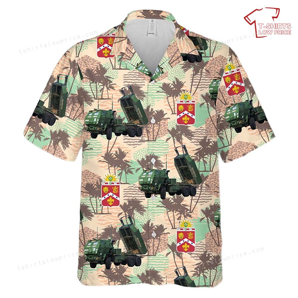 Related keywords: M142 HIMARS shirt, U.S. Army Hawaiian apparel, 5th Battalion Field Artillery, military tropical design