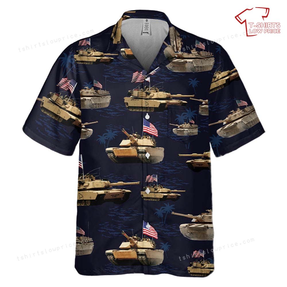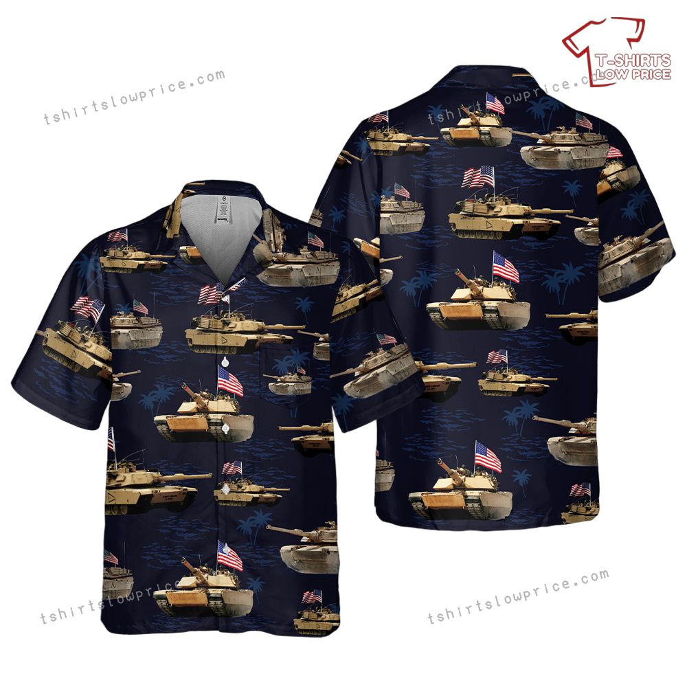 Related keywords: M1A1 Abrams Tank, July 4th shirt, patriotic Hawaiian shirt, military celebration apparel