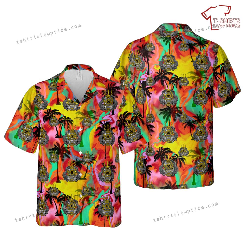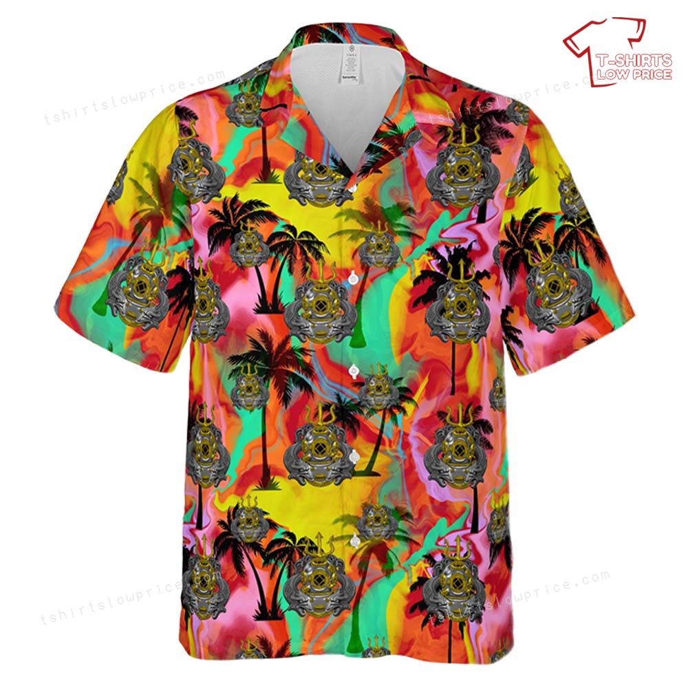 Related keywords: military diver shirt, tropical badge apparel, US Army insignia style, master diver Hawaiian design