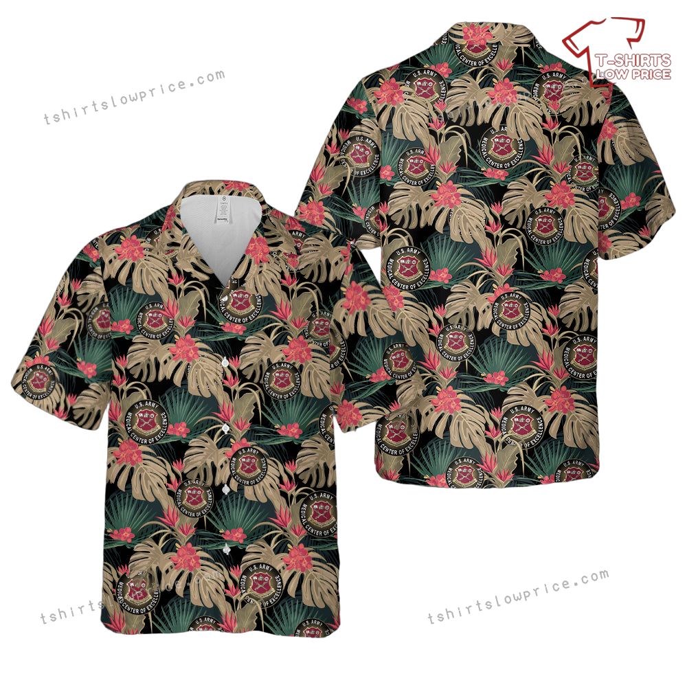 Related keywords: U.S. Army shirt, Medical Center of Excellence apparel, Hawaiian military shirt, tropical military design