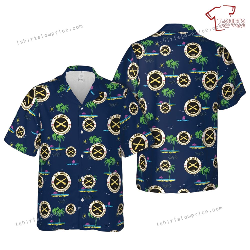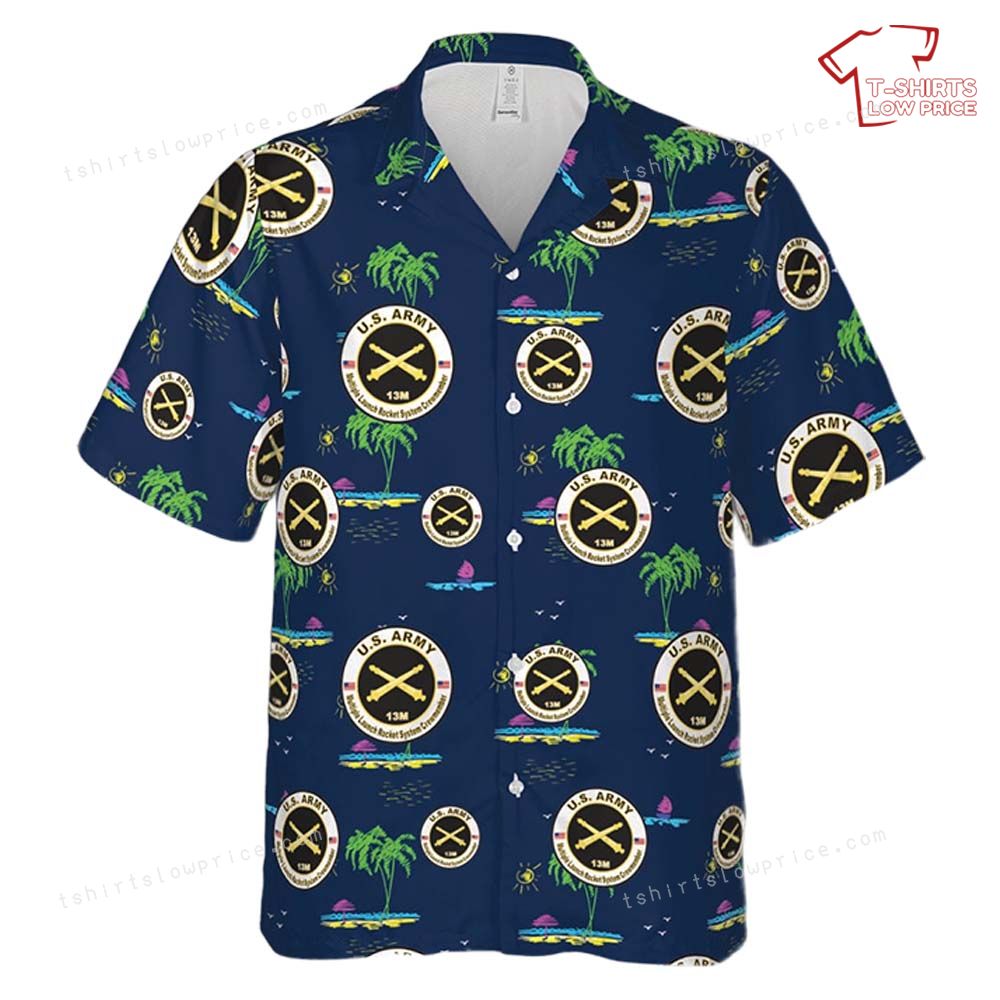 US Army MOS 13M Multiple Launch Rocket System Crewmember Hawaiian Shirt Product Detail: